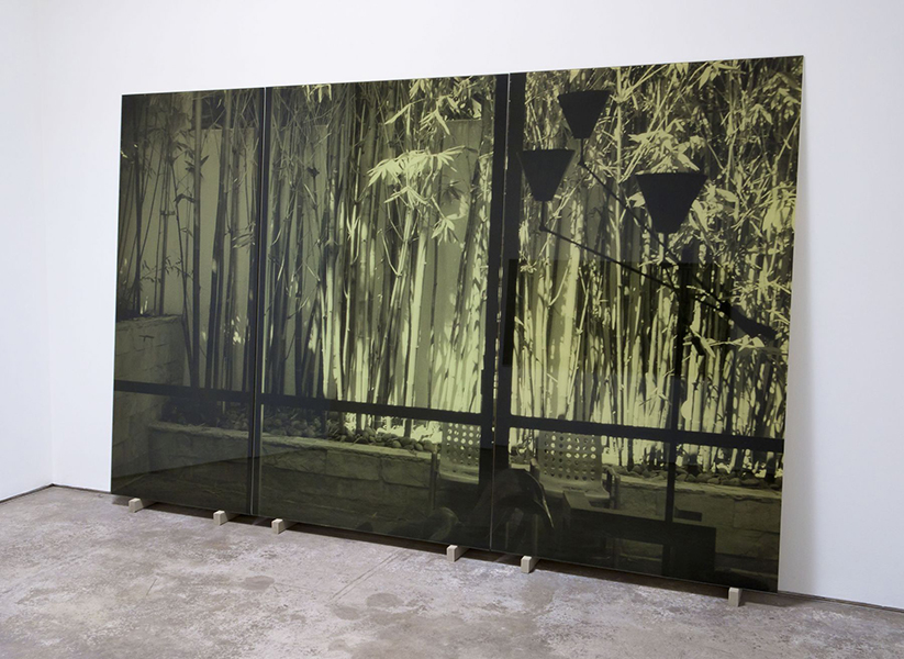 Oscar Niemeyer with Lamp, three-panel silkscreen on glass, Abstract Neighbors Exhibition at Christopher Grimes Gallery, 2012