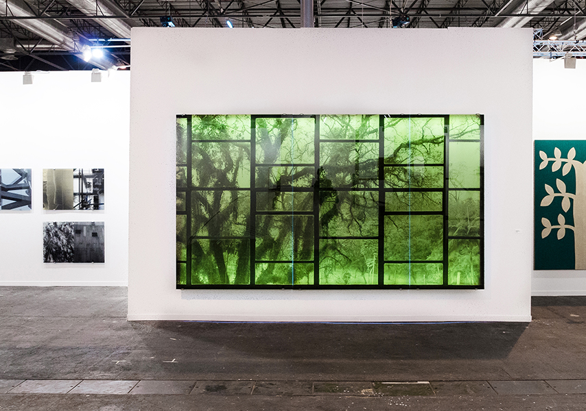 Oscar Niemeyer with Tree, 3-panel silkscreen print on glass, Christopher Grimes Gallery ARCO Madrid 2017